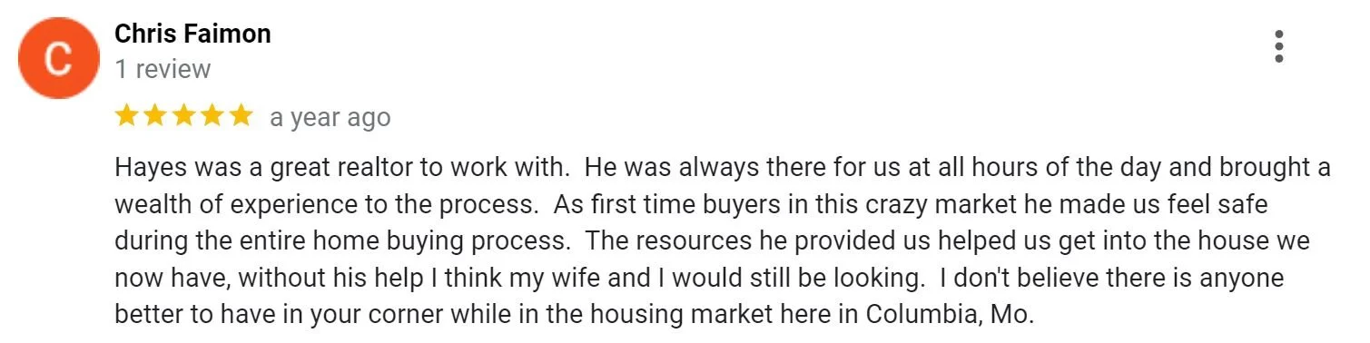 Over 20 years experience getting homes bought and sold in the mid-Missouri market- call Hayes today!